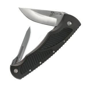 Introducing the double-folding Jim Shockey Signature Series - Havalon Titan-Pro. Featuring Havalon’s revolutionary Quik-Change blade system on one end and a Cryo hardened AUS8 blade on the other. This combination gives you the unmatched sharpness of a Havalon blade and the strength of a traditional fixed blade all in one tool.